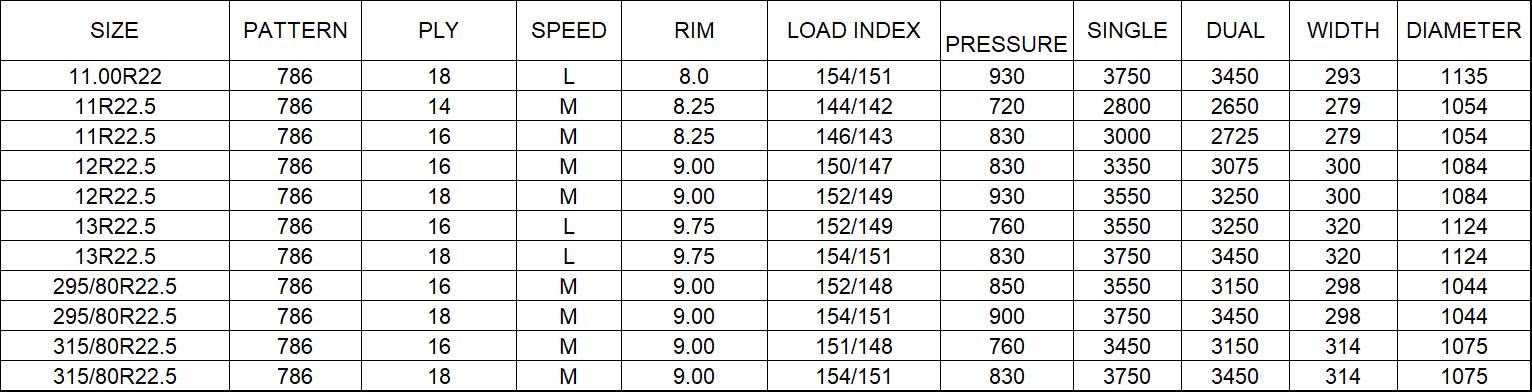 ANNAITE TRUCK TIRES 786 PATTERN FOR 295/80R22.5 315/80R22.5